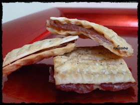Coprire con la carta da forno la leccarda, bagnare il pane azzimo sotto all'acqua corrente (contare velocemente fino a 10 per ogni sfoglia) Appoggiarlo sulla leccarda, preparare un intingolo con 2 cucchiai di acqua e due di olio, mescolare e spennellare la superficie, adagiare due pezzetti di sottiletta piccoli e mezza fetta di prosciutto cotto, richiudere con un'altra sfoglia precedentemente bagnata (come prima) e spennellare questa volta con un intingolo di due cucchiai di acqua, 2 di olio, un pò di aglio in polvere e un pò di rosmarino. Dividere le sfoglie in due per far sì che risultino proprio dei bocconcini, salare e pepare. Fare la stessa cosa con la coppa (però non ho messo le sottilette) Infornare in forno già caldo per 180° fino a doratura. Risulteranno belli croccanti e saporiti.