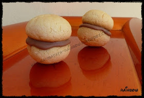 Con il leccapentole ho continuato ad ammorbidire il burro schiacciandolo in una ciotola, poi ho aggiunto lo zucchero. Aggiungere gli altri ingredienti e iniziare ad impastare sempre nella ciotola utilizzando le mani, fino ad ottenere un bell'impasto omogeneo (tipo frolla). Formare tante palline in quantità pari (perchè dopo andranno accoppiate) io per farle tutte uguali le go pesato (10 gr). Posizionarle su un vassoio coperto di carta da forno e metterle in frigo per un' ora (serve perchè così in forno non si afflosceranno). Accendere il forno, posizionare le palline distanziate l'una dall'altra in modo che cuocendosi non si attacchino e cuocere a 200° per 10 minuti, non devono essere troppo dorate, ma nemmeno troppo bianche. Appena sfornate non toccarle altrimenti si scioglieranno tra le mani, quindi lasciarle raffreddare. Sciogliere a bagnomaria la cioccolata farla raffreddare un pò. Distribuire la cioccolata su una metà e chiudere con un'altra metà. Lasciare che la cioccolata solodifichi e servire.
