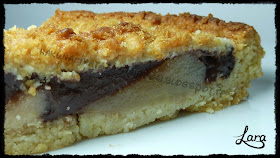 Per prima cosa preparare la frolla impastando tutti gli ingredienti quando si sarà formata una bella palla liscia dividerla in due, tenendone un pochino di più per fare la base e lasciare riposrae coperte con la pellicola trasparente, giusto il tempo di preparare il budino e di sbicciare le pere. Sbucciare le pere, tagliarle a fette e tenerle da parte. Preparare il budino, versando il contenuto della busta e i tre cucchiai di zucchero in un pentolino, aggiungere poco alla volta mezzo litro di latte stemperando bene per evitare la formazione di grumi e bollire 3 minuti mescolando continuamente. E ora assembliamo la torta. Foderare lo stampo con della carta da forno, stendere con le mani la palla di pasta frolla più grande cercando di fare un pò di bordi, cospargere la base con le digestive sbriciolate (o qualsiasi altro biscotto, servono per assorbire i liquidi delle pere), distribuire le fettine di pere, versarci sopra il budino di cioccolato, nonpreoccupatevi se è ancora caldo tanto và in forno subito, e infine ricoprire il tutto con la pasta frolla rimasta schiacciandola con uno schiaccia patate o se l'avete và benissimo anche una grattugia con la manovella. Informnare in forno già caldo a 200° per 30/40 minuti. Farla raffreddare per bene prima di sformarla e una volta sformata conservarla in frigo. Il giorno dopo è ancora più buona.
